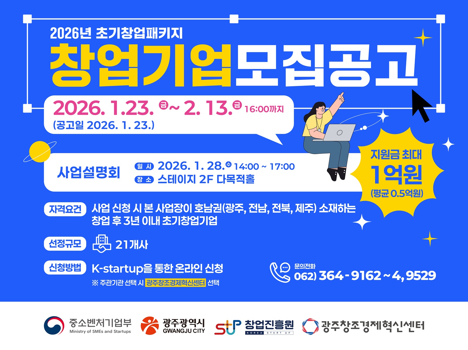 *신청 가능 업력 : 2023. 1. 23. ~ 2026. 1. 22. 기간 내 창업한 창업기업
